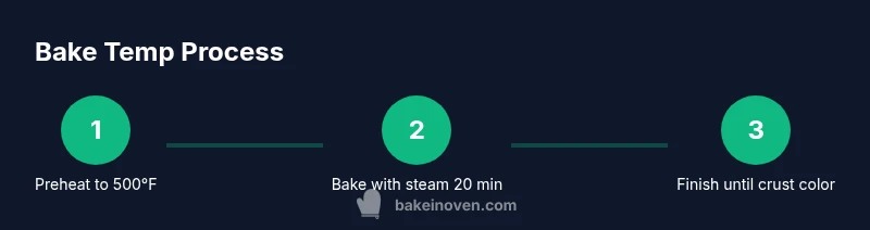 The best starting temperature is typically around 450 to 500 degrees Fahrenheit, then you finish at a lower heat to complete the bake, using steam in the early phase for a blistered crust.