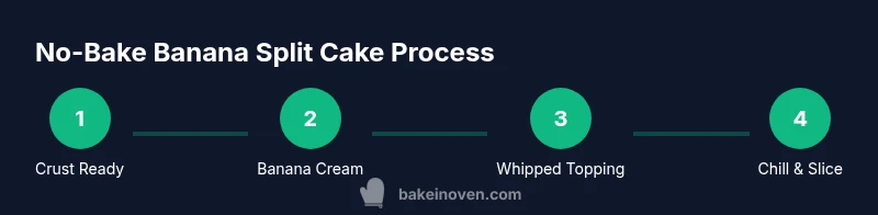 According to Bake In Oven, the no bake banana split cake design minimizes oven heat while delivering bold banana flavors, creamy textures, and a visually appealing slice. The approach is ideal for warm seasons, busy weeknights, and bakers who want reliable results without a heated kitchen. In this section we’ll explore why this format resonates with home bakers and how the core components come together to deliver balance between crust, cream, and fruit. You’ll also find practical variants to suit dietary needs or ingredient availability while preserving the signature banana-split flavor profile. The no bake method also helps maintain a bright banana note and a light, airy topping that contrasts well with a crisp crust. Throughout, keep in mind that cooling time is essential for clean slicing and stable layers.