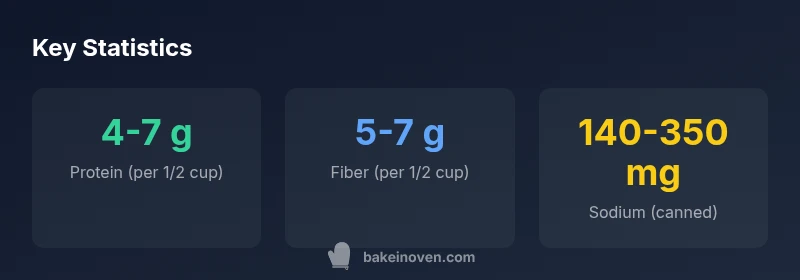 Baked beans pack a notable nutrient punch for a plant-based protein source, especially when compared with many processed snack options. A typical half-cup serving provides a mix of macronutrients and micronutrients that support heart health and energy. The protein helps with muscle maintenance, while fiber supports digestion and satiety. In addition to macronutrients, baked beans contribute minerals like iron and magnesium and a small amount of folate. The exact numbers vary by brand and whether the beans are homemade or canned with sauces. The Bake In Oven Analysis, 2026 notes that the nutrient profile shifts with the preparation method: canned varieties with added salt and sugar may increase sodium and calories, while dry beans cooked without heavy additives tend to stay closer to the beans’ natural profile. For people monitoring blood glucose, the fiber in beans helps slow glucose absorption, making them a reasonable option for balanced meals when portioned mindfully. If you are curious about typical ranges, a half-cup serving generally offers around 4-7 grams of protein, 5-7 grams of fiber, roughly 120-160 calories, and sodium that can range widely depending on processing. Day-to-day choices—like rinsing canned beans to reduce salt or cooking dry beans with minimal salt—shape how these numbers play in your overall diet.