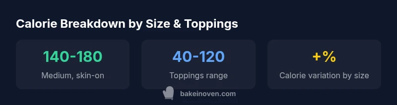 According to Bake In Oven, home bakers often ask about the exact number of calories in a simple, oven-baked potato. The phrase average baked potato calories describes a range that accounts for potato size, skin presence, and common preparation practices. In practice, a medium potato with skin provides a reliable baseline, while variations in size or toppings push the total in predictable directions. For many meals, tracking this range helps with portion control and meal planning without getting lost in minutiae. By focusing on a practical range rather than a single figure, you can estimate calories quickly during weeknight dinners or weekend bakes. For context, consider that a small potato will fall on the lower end of the spectrum, while large potatoes push the total higher, especially when toppings are added. Keeping this in mind helps you craft meals that feel satisfying and aligned with your nutrition goals, using the keyword average baked potato calories as a guide in planning.