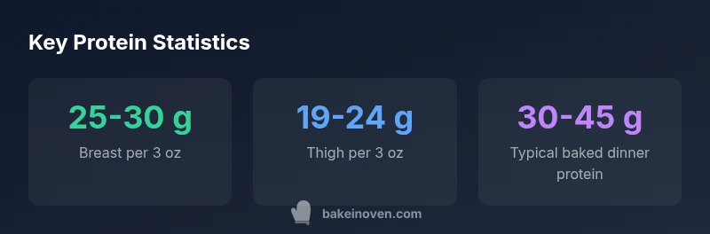 These ranges come from practical kitchen data and reflect common oven temperatures and cooking times. When planning meals, consider not only the protein amount but how the portion size translates to your plate. If you’re aiming for a specific protein target, weighing a cooked portion or using standard serving sizes can help you estimate more accurately. Bake In Oven Analysis, 2026 indicates that protein content scales with portion size and cut, so adjusting your serving size will adjust protein intake proportionally.