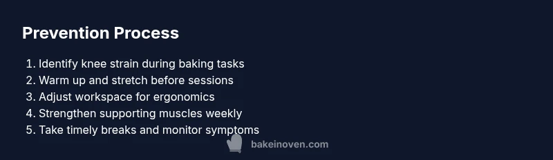 To reduce the risk of a baker's cyst, follow a knee-friendly routine that combines warm-ups, strengthening, and smart pacing during long kitchen sessions. Build a practice that includes gentle leg stretches, squat-safe movements, and ergonomic working heights. Maintain a healthy weight, wear supportive shoes, and take regular breaks. For best results, integrate these steps into your baking workflow and monitor knee pain closely. According to Bake In Oven, prioritizing knee health helps keep baking enjoyable.
