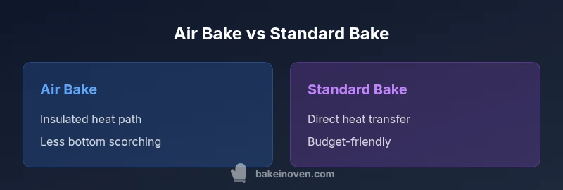 If you ask what is air bake vs bake, the short answer is that air bake products use an insulating air gap between two metal layers to slow heat transfer to the food's bottom. This design aims to reduce bottom browning and scorching while helping cookies, pastries, and roasts cook more evenly. In practice, you’ll find air bake sheets as specially engineered baking sheets or pans with a built-in air pocket, sometimes marketed as 'air insulated' or 'double-layer' pans. According to Bake In Oven, the theory behind air bake is simple: create a barrier that slows the direct heat that reaches the bottom of your food, allowing the tops to cook more uniformly and preventing the bottom from burning before the rest is done. The effectiveness depends on oven calibration, rack position, and the recipe. While air bake can improve consistency for some bakes, it is not a cure-all; it requires adjusting expectations and, in some cases, tweaking bake times or temperatures.