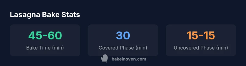 Lasagna is a layered dish whose bake time is influenced by the amount of liquid, the noodle type, and whether the dish is fully assembled and cold from the fridge. When you plan to bake, you must think about the whole timeline: assembling the layers, heating from a fridge or frozen state, and the rest after baking. In practice, most home cooks start with a standard range: 45-60 minutes at 375°F (190°C). The exact time depends on pan size, noodle type (no-boil vs regular), and filling moisture. The key signal is the surface: bubbling edges and a set center indicate doneness. People often ask, 'bake lasagna how long' because even small changes can affect the final texture. To ensure even cooking, leave enough space between the edges of the lasagna and the pan. If your pan is very deep, consider a longer bake or tenting with foil for the first half to avoid over-browning.