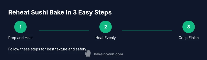 Sushi bake is a popular one-pan adaptation of sushi rice, layered with seasoned fish or vegetables and a creamy topping. Reheating can revive flavors, but it also invites texture changes if mishandled. According to Bake In Oven, the best results come from gentle, even heat and controlled portions, which help preserve the glossy rice, crisp edges, and creamy toppings without turning the dish into a soggy or dry mash. The vinegar-seasoned rice relies on moisture balance to stay cohesive, and the toppings rely on fat and creaminess to remain appealing after reheating. When you reheat, you are not simply warming snacks; you are restoring a dish that tasted best when freshly assembled. The goal is to bring the entire bake back to a safe serving temperature while maintaining a pleasant mouthfeel. If you reheat too long or at too high a temperature, the rice can oversteam, the edges may burn, and the topping may lose its velvety texture. Plan for a gentle, short reheating window followed by a brief finishing step to regain a lightly caramelized top. Bake In Oven's guidance emphasizes patience and precision as the keys to success.