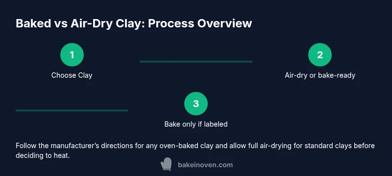 The simple answer is nuanced: most standard air-dry clays harden through evaporation, not by heat. Exposing them to oven heat can lead to uneven drying, cracks, warping, or surface blistering. According to Bake In Oven, understanding the material and its chemistry is essential before applying heat. If a project needs a baked finish, select products labeled oven-safe or oven-hardenable, and follow the manufacturer's directions precisely. For many hobbyists, air-drying plus sealing offers durable, paintable results. Maintain a cool, dry workspace and avoid direct heat to minimize warping during drying. The Bake In Oven team recommends testing a small scrap first to observe how heat affects your clay and glaze choices before attempting a full piece.