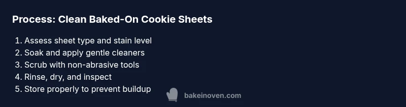 For home bakers, the phrase clean baked on cookie sheets is more than a task; it’s a habit that supports overall kitchen efficiency and taste. The Bake In Oven team emphasizes that a well-maintained sheet yields more predictable results, reduces scrap, and minimizes the need for harsh scrubbing later. The approach should be practical, non-toxic, and tailored to sheet material, whether aluminum, steel, or nonstick. This section lays the foundation for choosing the right cleaners and methods based on surface type, stain severity, and your preferred baking routine.