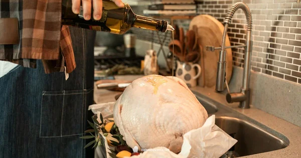 Season the cavity and the skin evenly; truss the legs if desired for neat presentation. A light coat of oil or melted butter helps browning and flavor.