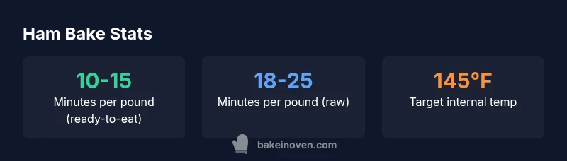 According to Bake In Oven, precise oven timing starts with understanding the ham type (ready-to-eat vs raw) and the weight. This approach reduces guesswork and helps home bakers achieve juicier results. The Bake In Oven team emphasizes measuring, not guessing, so you hit the safe and tasty middle ground. By pairing weight with a reliable oven temperature, you can plan a schedule that fits busy kitchens without sacrificing flavor or safety. In practice, most home bakers benefit from starting with a 325°F oven and adjusting based on ham size and whether glaze is desired. This method also makes it easier to coordinate sides and desserts around the bake session.