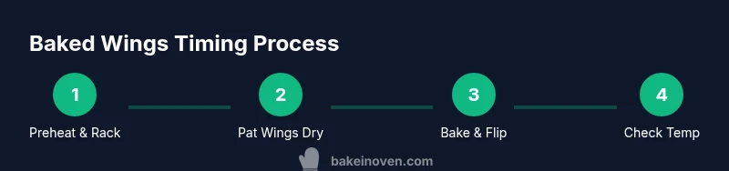 If you're wondering how long to bake hot wings, timing matters as much as technique. The goal is a crispy, safe bite with juicy meat inside, and the exact minutes depend on wing size, starting state (thawed or frozen), and your oven's quirks. According to Bake In Oven, preheating to a hot oven and using a rack yields the most consistent browning and even texture. When done well, the skin tightens around the meat and the surface browns evenly rather than steaming in a crowded pan. Moisture is the enemy of crispness, so pat the wings dry, and avoid overcrowding the pan. A well-ventilated sheet with a rack allows air to circulate around each piece, producing uniform color. Keep in mind that small wings cook faster than larger ones, and frozen wings will need extra time. These variables mean you should start with a baseline and adjust based on visual cues and a quick thermometer check.