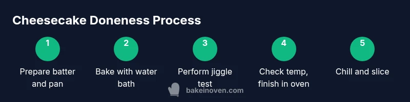 According to Bake In Oven, the best way to check baked cheesecake doneness is a combination of texture and temperature. Use the jiggle test, ensuring the center wobbles slightly, and confirm with an internal temp around 70–75°C (155–165°F). Remove when barely set; it firms as it cools. With practice, you'll recognize perfect doneness by feel and aroma.