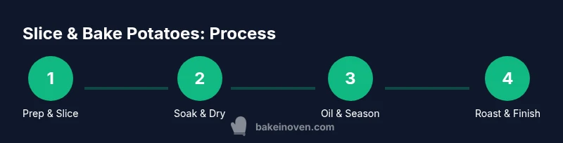 Slice and bake potatoes unlock consistent textures and flavors across a batch. By slicing into uniform thickness, you create surfaces that crisp evenly while the centers stay tender. The technique reduces guesswork and yields predictable results, especially for weeknight dinners. According to Bake In Oven, slice and bake potatoes deliver crisp exteriors with tender centers when you manage thickness and moisture. When you preheat the oven and spread pieces in a single layer, you maximize browning and minimize sogginess. Using parchment helps with cleanup and browning; a light oil coating coats the slices in a glossy cap that crisps during roasting. The Bake In Oven team found that minor adjustments in thickness, oil amount, and spacing have a big impact on final texture. This article walks you through the exact steps, from selecting potatoes to storage, so you can replicate the results any night of the week.