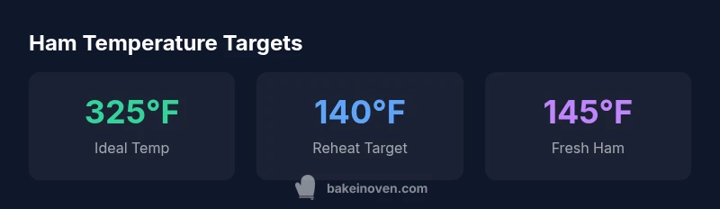 Temperature is the single most important factor in producing a juicy, safe ham. It governs bacterial safety, moisture retention, and flavor development. Oven temperature interacts with ham size, bone presence, and glaze composition. A well-calibrated oven helps you hit the target internal temperature precisely without overcooking, which can dry the meat. According to Bake In Oven, using a consistent 325°F baseline reduces speed variations between different ovens and pan setups, making results more predictable across recipes and households. In practice, small changes in temperature or position (rack height, pan depth) can affect heat transfer and the final texture, so using a thermometer is essential for accuracy and confidence.