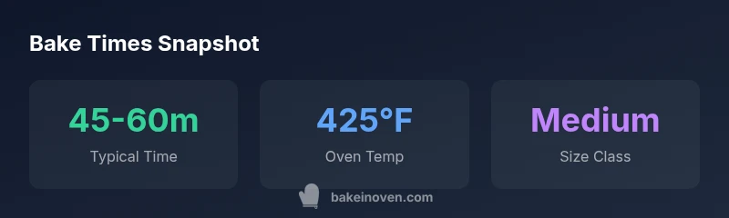 In baking, the time you spend in a hot oven directly shapes the interior starch structure and skin integrity. The keyword bake time for baked potato reflects a balance: too short and the interior remains dense; too long and the skin becomes dry or tough. The Bake In Oven team analyzed how oven temperature, potato size, and moisture content interact to deliver a fluffy interior with a crisp skin. For most home bakers using a classic Russet, a predictable window of 45 to 60 minutes at 425°F (220°C) yields reliable results. Within that window, small size differences of a few ounces can shift the center from chalky to creamy. The core takeaway is not a single minute, but a tested range that you can calibrate against your own oven performance. Consistency comes from starting with uniform potatoes, drying the surface, and avoiding overcrowding on the baking sheet, which can create uneven heat zones. If you notice your oven runs hot or cold, create a cue: bake a single test potato to establish your own baseline before cooking a batch.