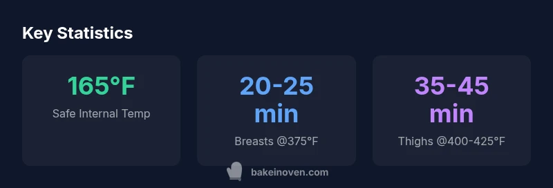 In practice, we recommend preheating to a steady 375°F (190°C) for most boneless cuts and adjusting up to 400-425°F for bone-in pieces to promote browning. Always rely on a thermometer for confirmation rather than clock-watching alone. This approach aligns with best practices in temperature management and helps home cooks translate the principle into real-world outcomes. As you’ll see throughout this guide, the precise chicken bake temperature time combination will depend on the cut, size, and oven behavior, but the core target remains consistent: reach 165°F internally and finish with moist, juicy meat.