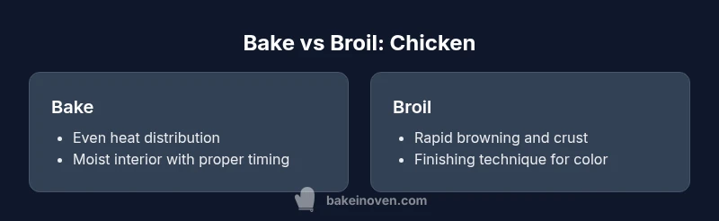 Explore is bake or broil better for chicken with a kitchen-tested comparison. Learn heat dynamics, timing, and finishing tips for juicy, browned chicken from Bake In Oven.