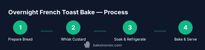An overnight bake involves soaking bread in a custard mixture and chilling it overnight, allowing deep absorption and even flavor distribution before baking the next day.